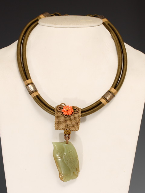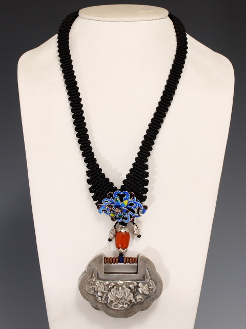 Cherry Hill Antiques has a large collection of handmade, Chinese ethnic-style jewelry designed by Li-Chiao Upham. Li-Chiao's designs feature Chinese knotting with a combination of old or new silver, old or new jade, coral, lapis and/or cloisonne beads. Jeweled stones from old items, such as hairpins, and Qing dynasty jade peonies are unique features on some of the necklaces. Cherry Hill Antiques also has silver jewelry from Bali, Indonesia and inexpensive hand knotted jade bracelets and necklaces from Mainland China. Li-Chiao will also help you design and make your custom necklace.